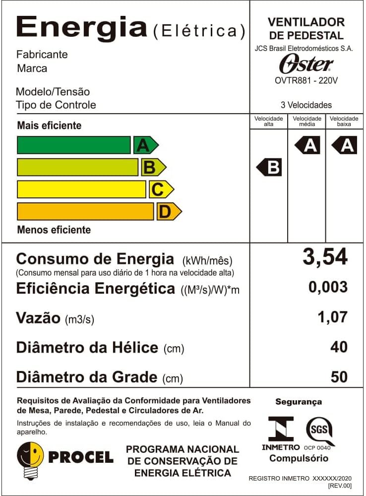 Ventilador de Coluna Oster Power Fresh, 220V, Preto/Vermelho, 140W, OVTR881