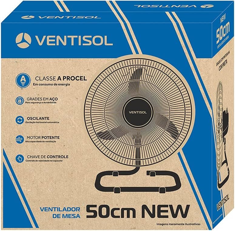 Ventisol Ventilador de Mesa Oscilante, NEW, Preto, 50cm, 127V