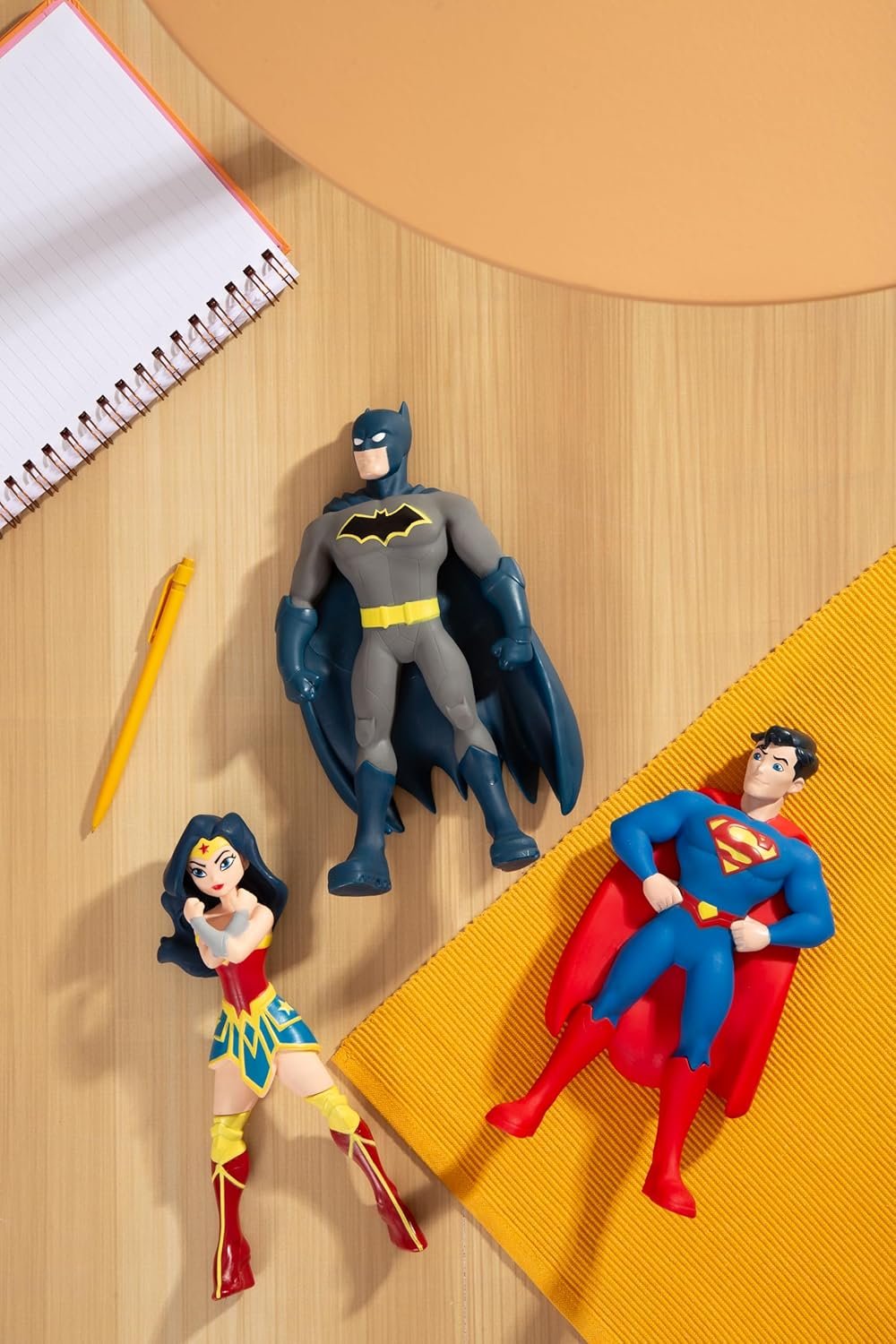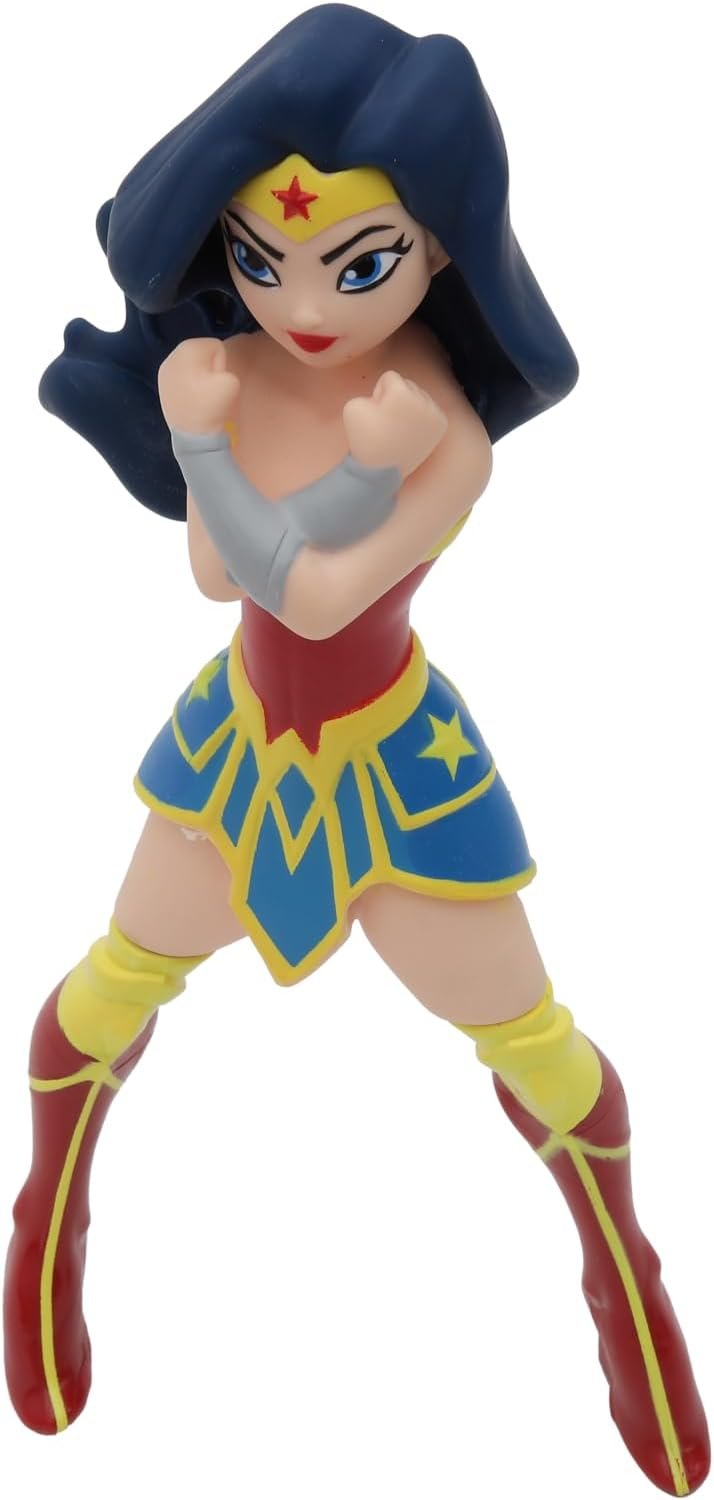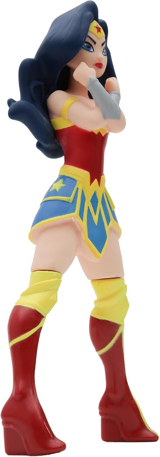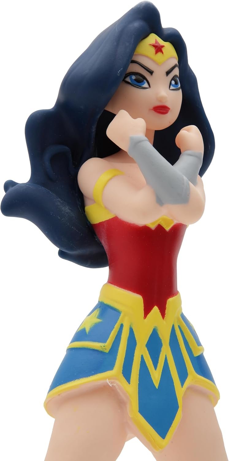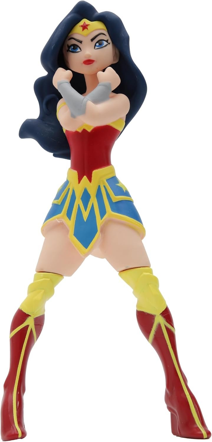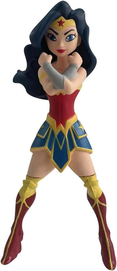 Recursos: O boneco Mulher Maravilha é extremamente versátil. Ele pode ser usado para brincadeiras em divesos ambientes. A textura de vinil proporciona conforto e segurança, enquanto seu acabamento realista estimula a imaginação das crianças, permitindo que recriem histórias heroicas ou inventem novas aventuras.